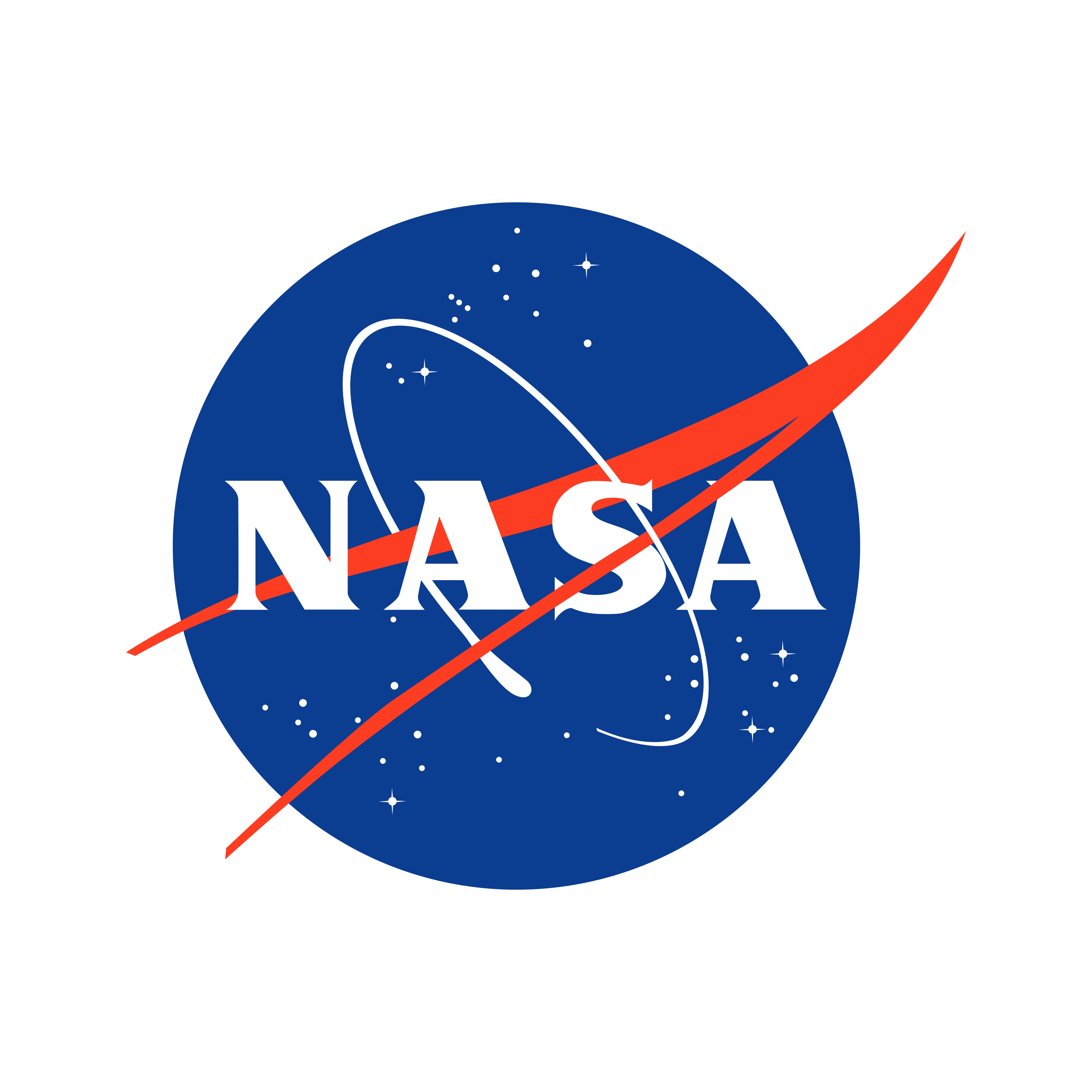 The National Aeronautics and Space Administration (NASA) is the independent agency of the U.S. federal government responsible for the nation's civil space program and aerospace research. The iconic 'meatball' logo, the agency's official seal, features a blue sphere representing a planet, stars for space, a red chevron for aeronautics, and an orbit, encapsulating its mission of exploration. Download for free the National Aeronautics and Space Administration logo in vector (SVG) or PNG file format.