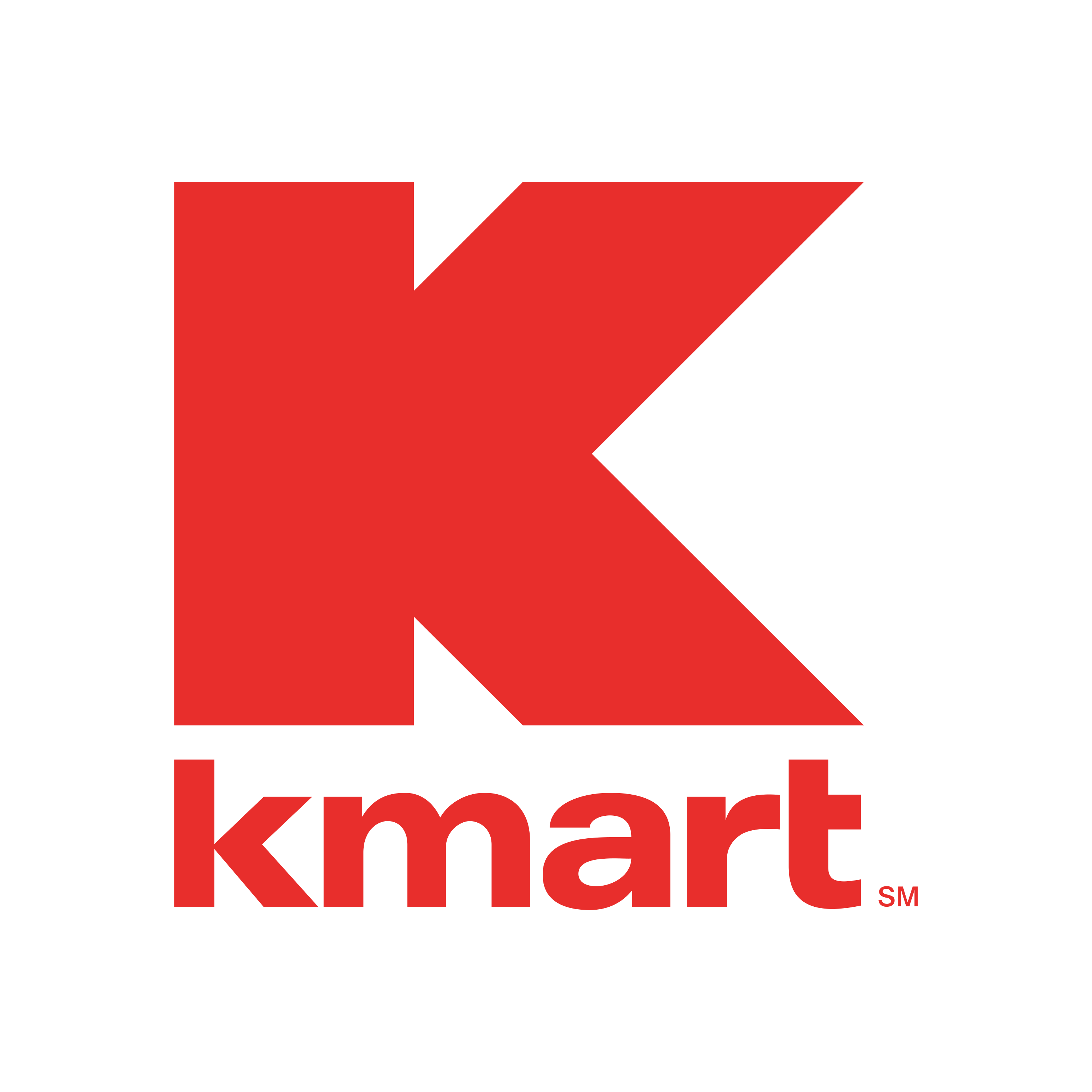 Kmart is an American chain of big-box discount department stores. The company's most iconic logo is a bold, red, stylized letter 'K' with the word 'mart' written inside it in a simple, sans-serif font. This design is a classic piece of 20th-century retail branding, instantly recognizable and associated with affordable, everyday shopping for millions of American families. It represents a legacy of being a pioneer in the discount retail space and a cornerstone of suburban shopping centers for decades, known for its 'Blue Light Specials'. Download for free the Kmart logo in vector (SVG) or PNG file format.