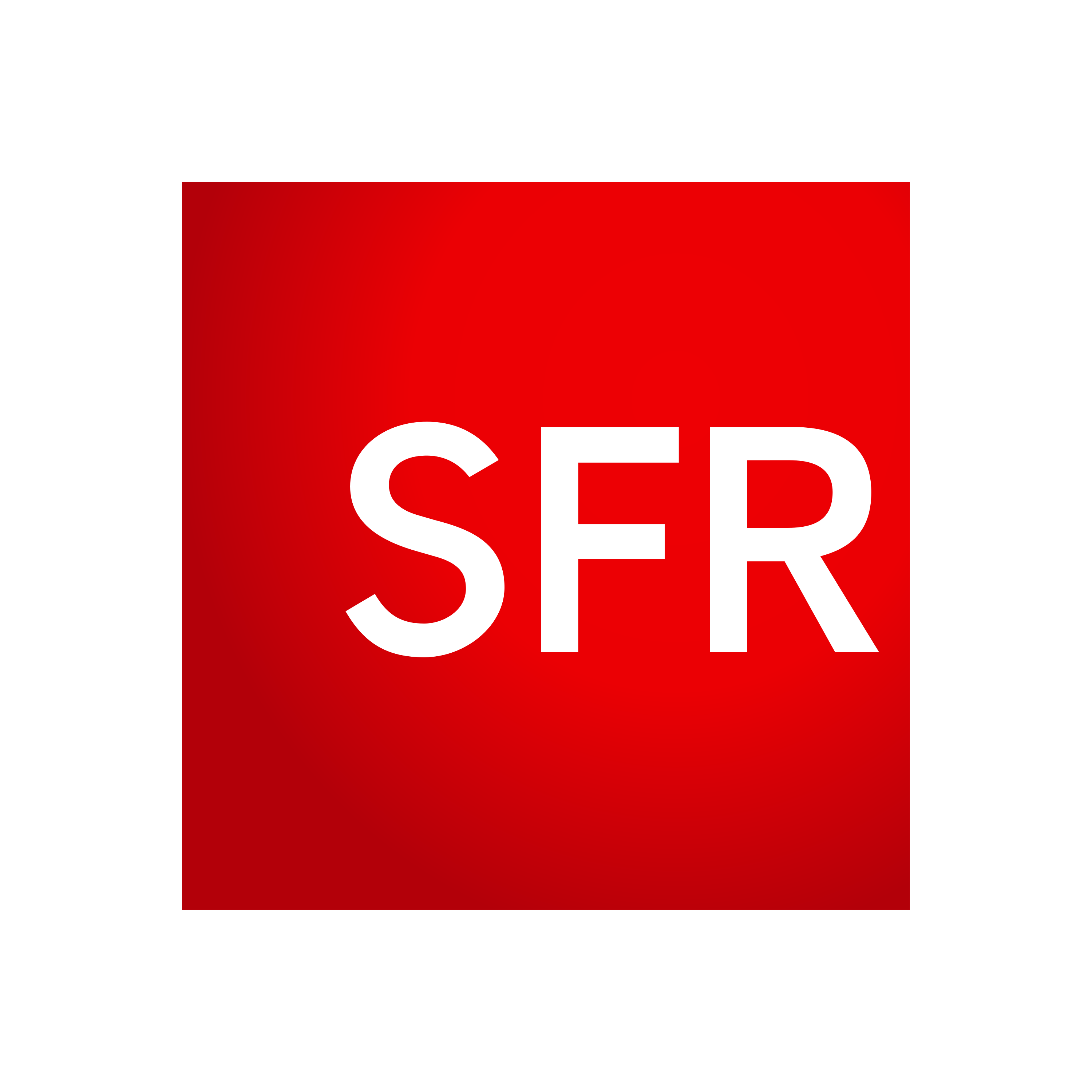 SFR (Société française du radiotéléphone) is a major French telecommunications company that provides mobile, fixed-line, internet, and television services. The logo is a bold, red square with the white letters 'SFR', creating a strong and highly recognizable mark. This simple and confident design, often referred to as 'le carré rouge' (the red square), symbolizes the company's powerful network and its significant presence in the French market, representing a comprehensive provider of digital and communication services. Download for free the SFR logo in vector (SVG) or PNG file format.