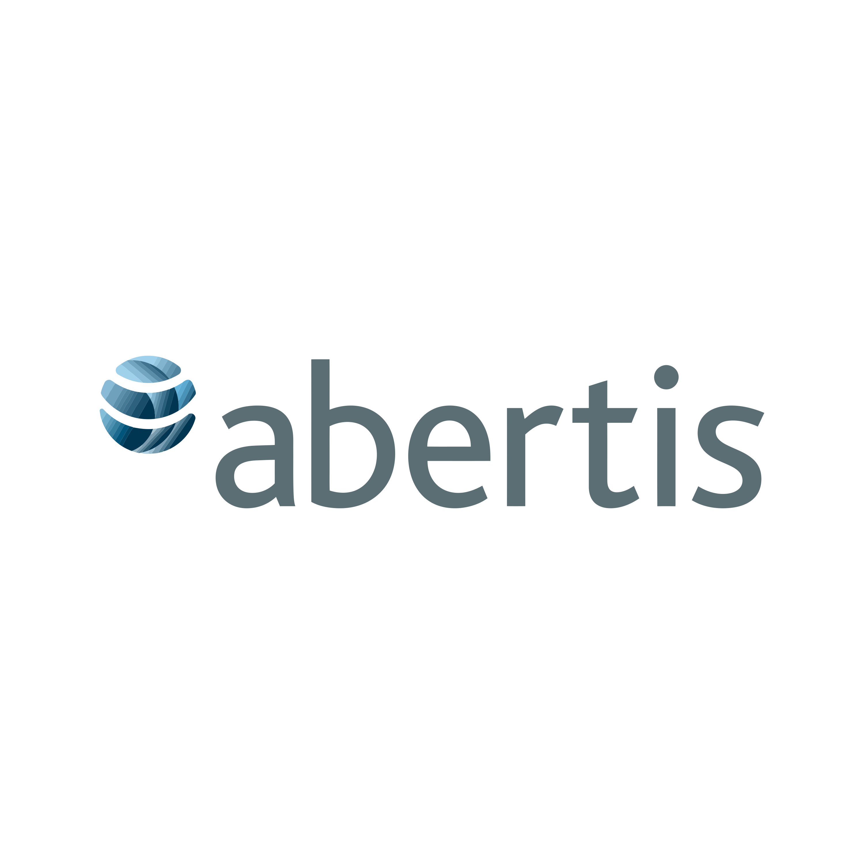 Abertis is a global leader in the management of toll roads and transport infrastructure, operating thousands of miles of highways worldwide. The logo is a simple, modern wordmark, "abertis," in a lowercase, blue, sans-serif font. It is paired with a distinctive abstract emblem of two overlapping, flowing 'ribbons' or 'roads,' one blue and one green. This perfectly symbolizes the company's core business of 'roads' (blue) and its commitment to 'sustainability' (green). Download for free the Abertis logo in vector (SVG) or PNG file format.