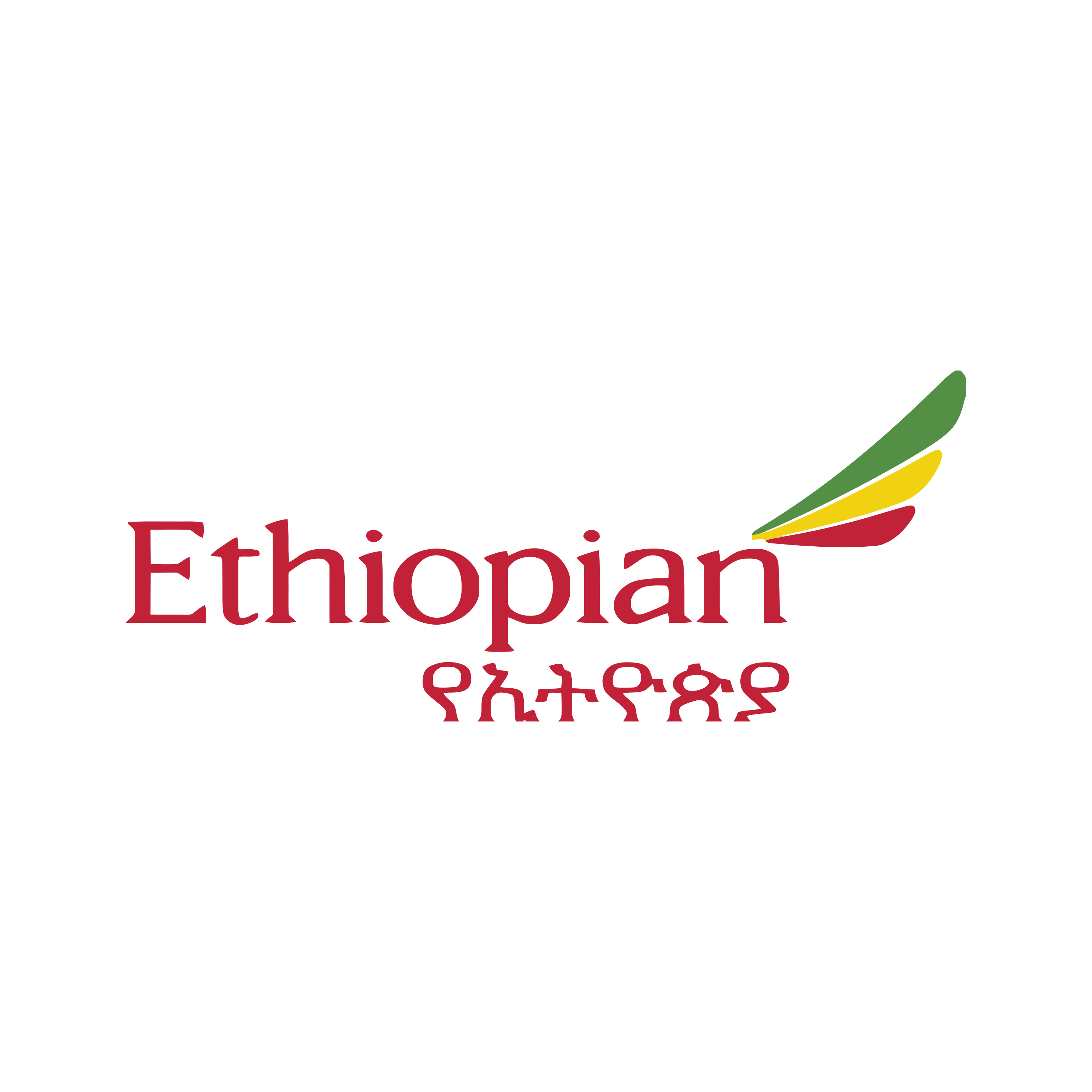 Ethiopian Airlines is the national flag carrier of Ethiopia and one of the largest and most successful airlines on the African continent, with a major global hub in Addis Ababa. The logo is a simple, elegant wordmark, "Ethiopian," paired with a distinctive emblem. This emblem features a stylized 'wing' or 'swoosh' rendered in the three colors of the Ethiopian flag—green, yellow, and red—powerfully representing its national identity and its role in connecting Africa to the world. Download for free the Ethiopian Airlines logo in vector (SVG) or PNG file format.