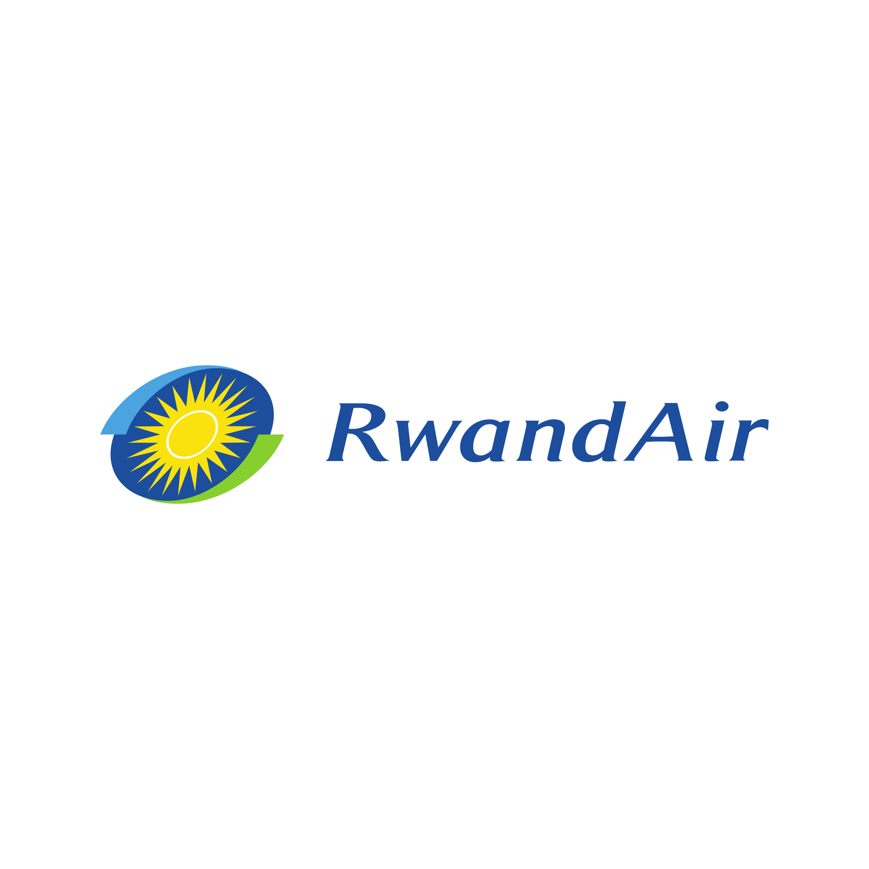 RwandAir is the national flag carrier airline of Rwanda, operating from its hub in Kigali to destinations across Africa, Europe, the Middle East, and Asia. The logo is a simple, modern wordmark, "RwandAir," paired with a stylized emblem. This emblem, a colorful, abstract wing or bird shape, is rendered in the colors of the Rwandan flag (blue, yellow, and green), powerfully connecting the airline to its home nation and symbolizing its role in connecting Rwanda to the world. Download for free the RwandAir logo in vector (SVG) or PNG file format.